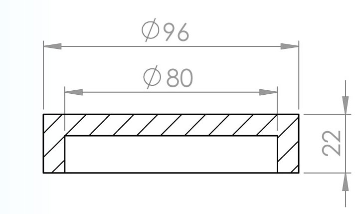 Dimenzije:  fi 96 x 22.